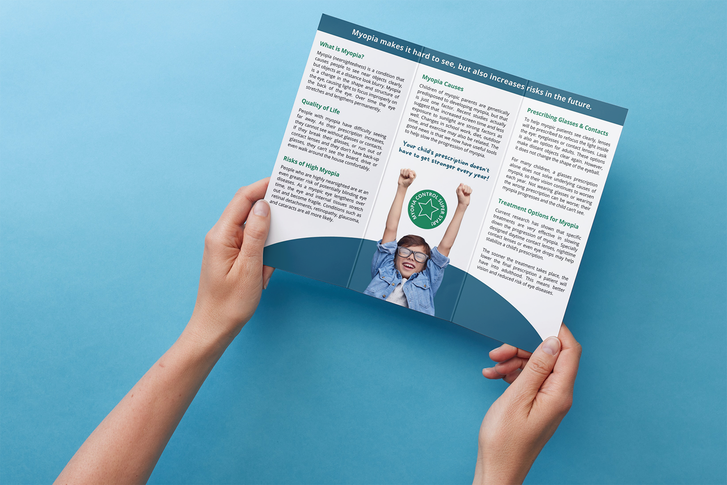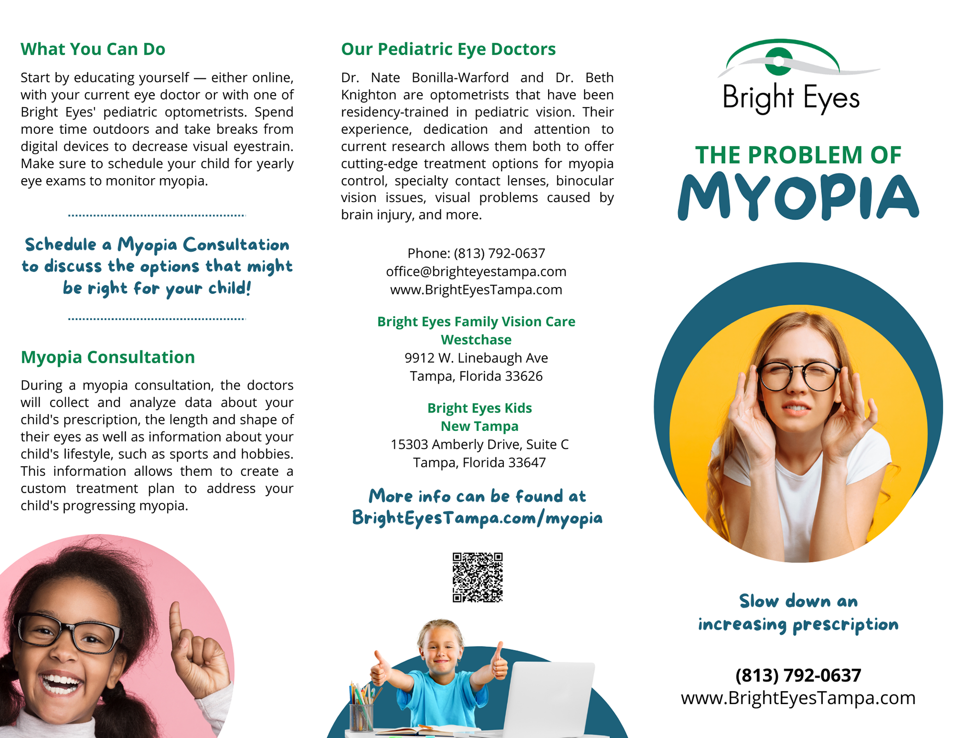 During the course of my internship at Bright Eyes I was asked to create a brochure highlighting the importance of myopia management. By updating the previous brochure design, we were able to streamline the information, improve the overall flow and develop a much clearer call-to-action.