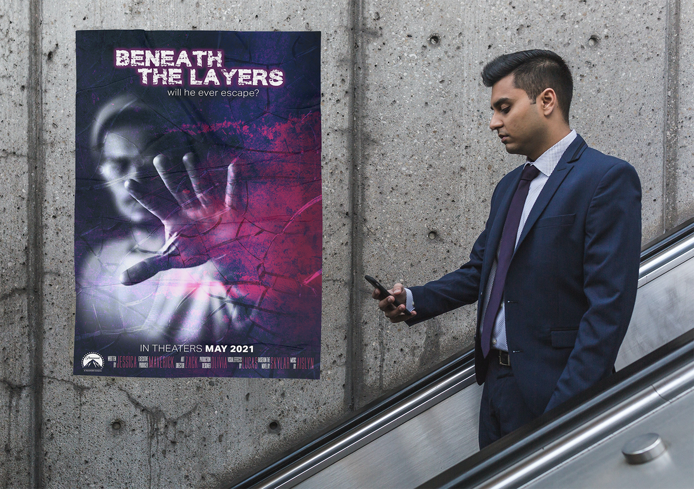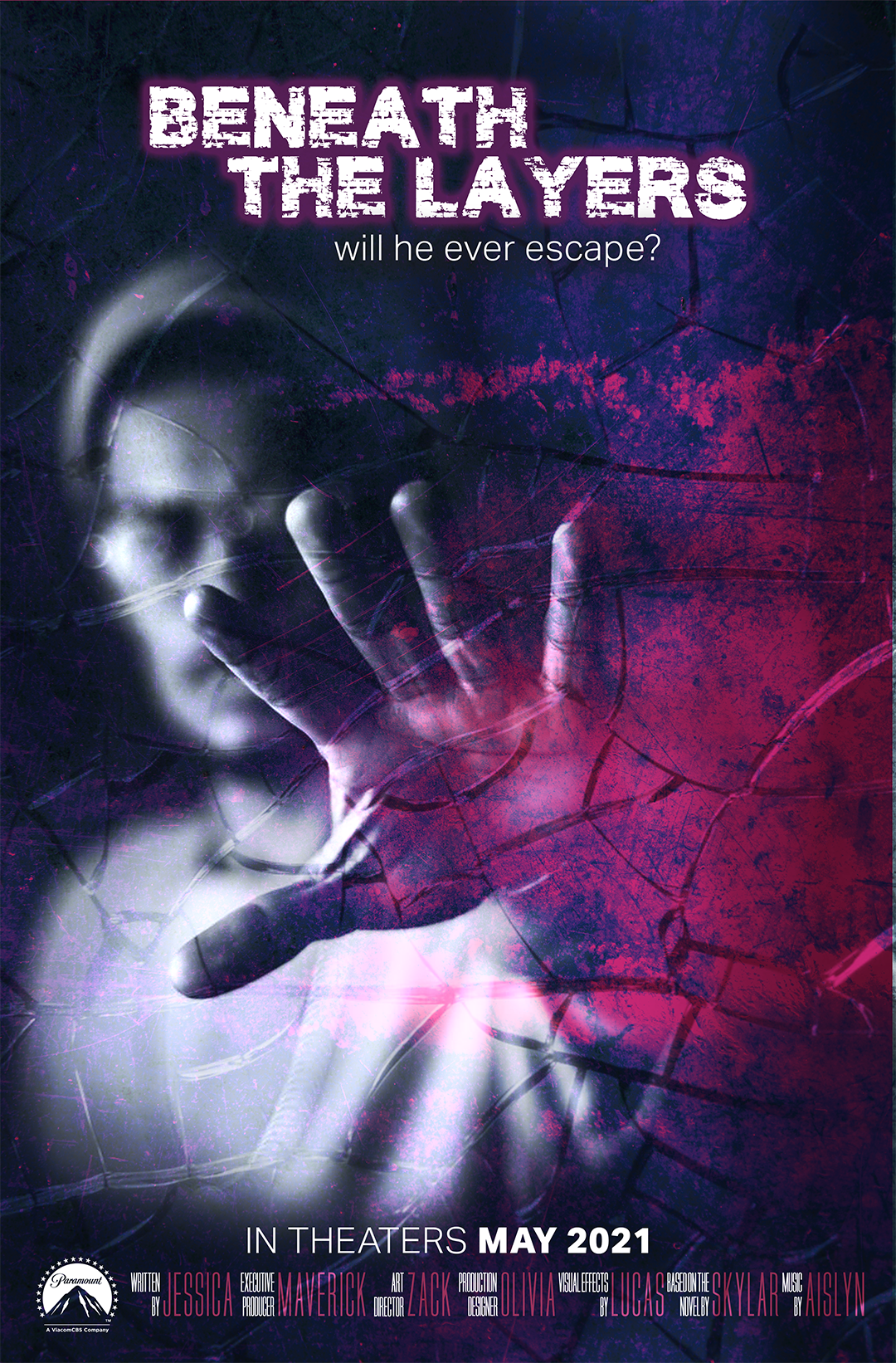 For this assignment we were asked to design a Photoshop themed movie poster. My final project was the one shown here, Beneath the Layers. It was nominated for a Fine Arts and Media Award at my school.